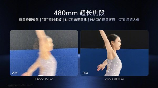 另外,vivoX300系列带来了全新升级的舞台灵动人像算法,结合双曝技术,能在舞台场景下实现高速运动人像的清晰定格,还有全新升级的“拍录一体”功能,搭载自研蓝图极限追焦引擎,抓拍动静皆宜,超长焦锁定制胜瞬间。